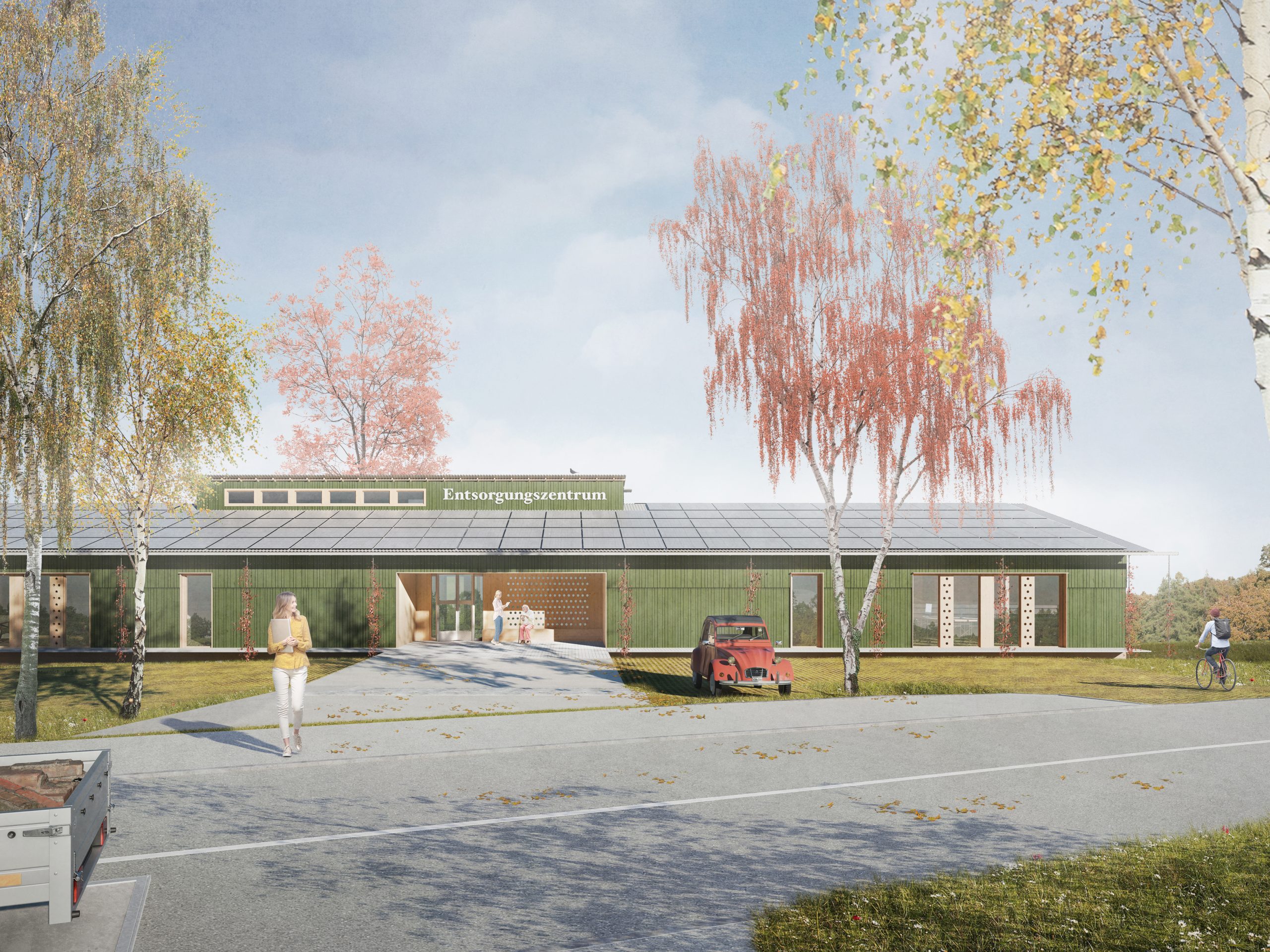 unser entwurf für das neue verwaltungsgebäude des entsorgungszentrums heilbronn basiert auf den prinzipien des klima- und kreislaufgerechten bauens. das gebäude ist zement- und leimfrei konzipiert und nutzt eine einfach aufgebaute holzskelettkonstruktion aus wiederverwendeten holzbalken aus alten scheunen und dachstühlen als grundlage. der einsatz von resthölzern aus kalamitätsholz, ungebrannten lehmsteinen und stopfhanf ergänzt das nachhaltige konzept. alle bauteile sind sortenrein rückbaubar und ermöglichen eine vollständige rückführung in den stoffkreislauf. ein low-tech-raumklimakonzept mit natürlicher lüftung, thermischer masse und effizienter nachtauskühlung gewährleistet hohen komfort bei minimalem energieeinsatz. ergänzt wird dies durch die nutzung von energie aus deponiegasen sowie photovoltaikmodulen aus restbeständen. die flächensparende setzung und die sensible einbettung in die topografie stärken die funktionale klarheit der gesamtanlage. das innere erschließungskonzept überzeugt durch klarheit und orientierung. die abfolge von offenen und geschlossen gestalteten raumgruppen erzeugt trotz der längsentwicklung eine großzügige raumwahrnehmung. der entwurf vereint ökologische verantwortung, funktionale effizienz und zirkuläres bauen zu einer zukunftsorientierten verwaltungsarchitektur.